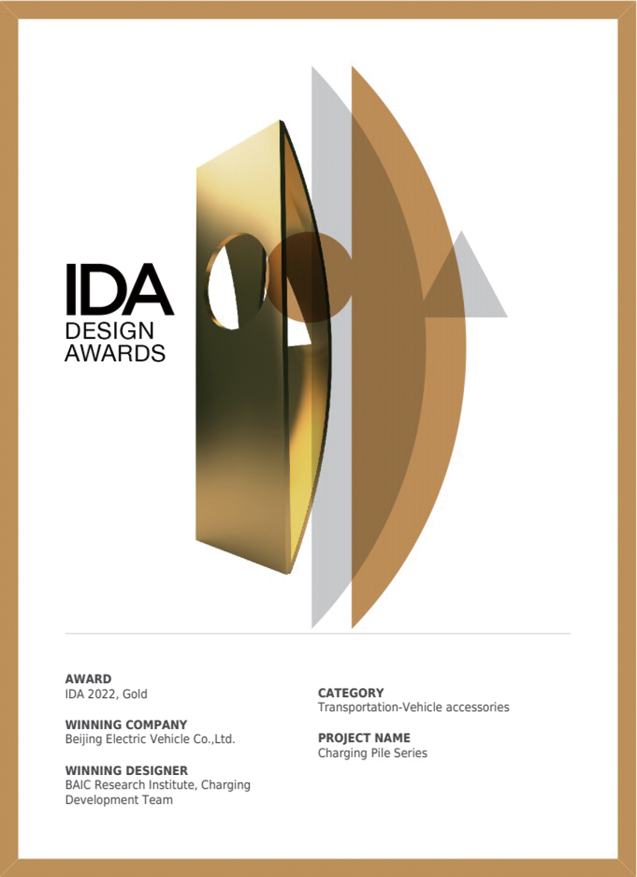 The International Design Awards (IDA), founded by Farmani Group of the United States, recently announced its 16th award winners for 2022; and the ARCFOX charging pile line, which was independently developed by BAIC GROUP, won the Gold Award for 2022.