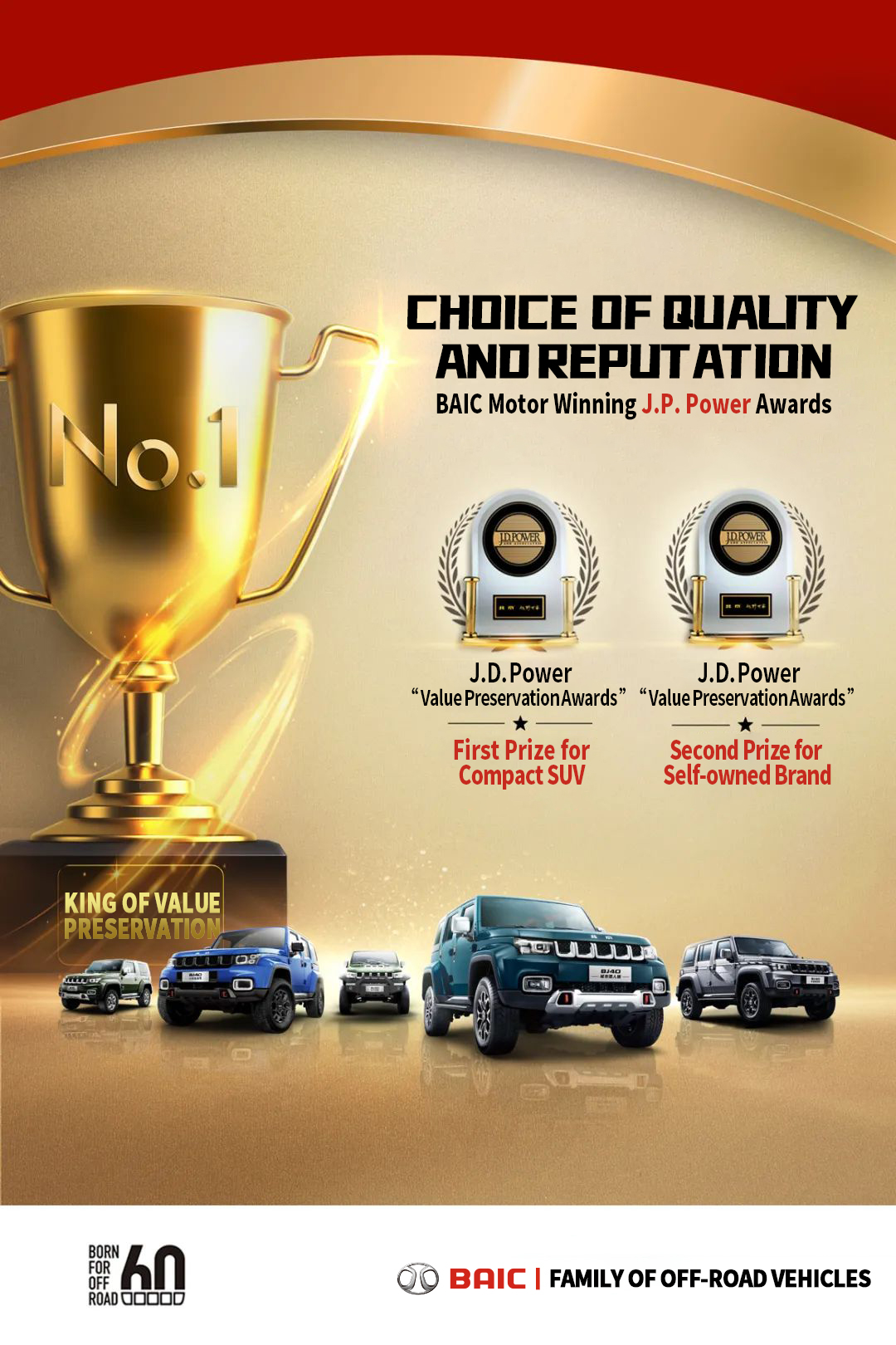 Winning two value preservation prizes for model and brand respectively demonstrates the strength and customer recognition of BAIC ORV.