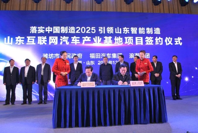 當天,北汽福田與濰坊市人民政府正式簽約,共同打造山東互聯網汽車產業基地。同時,北汽福田與浪潮集團簽署戰略合作框架協議,中國商用車第一品牌牽手中國本土綜合實力最強的大型IT企業之一,雙方將通過跨界融合創新,聯手打造中國互聯網汽車生態系統。