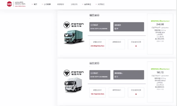 2024年11月26日,北汽福田輕卡歐馬可、奧鈴4款車型成功通過中國汽車產業鏈碳公示平臺(以下簡稱“CPP平臺”)的嚴格審核,榮獲碳足跡量化標識,這是首批商用車碳足跡量化標識。此次公示,是北汽福田積極踐行雙碳目標,實現產品綠色低碳轉型的有力佐證。
