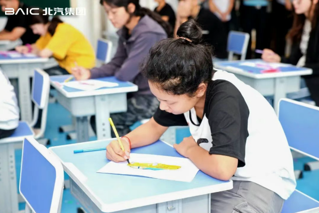 活動中,北汽集團青年志愿者精心設計了《小北伴你行:汽車奇妙之旅!》公益課程,通過互動游戲、動畫演示和動手實踐,帶領孩子們探索汽車歷史及交通安全知識,孩子們也用畫筆描繪出心中的智能汽車,展現無限創意。