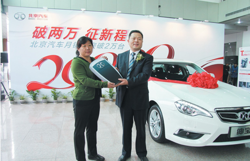 2013 年10 月,北京汽車總銷量達到25071 輛,其中,北汽紳寶1000 輛以上、北汽E 系列8008 輛、北汽威旺16000 輛。在競爭日益激烈的汽車市場,作為不折不扣的“新軍”,北京汽車以一連串令人瞠目的數字,在傳統汽車市場殺出一條血路,為自主品牌重新標定了“火速”增長的新紀錄,彰顯了“北京速度”。跨越月銷20000 輛的門檻,北京汽車只用了兩年多的時間,這背后也凝聚了所有北京汽車人的心血和智慧,以及廣大經銷商對北京汽車的大力支持。