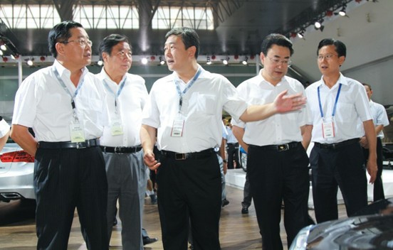 北汽集團副總經理張健出席13 日上午舉行的長春汽博會開館式,并陪同中國汽車工程學會常務副理事長兼秘書長付于武等汽車行業、企業領導參觀北汽展臺(右圖)。