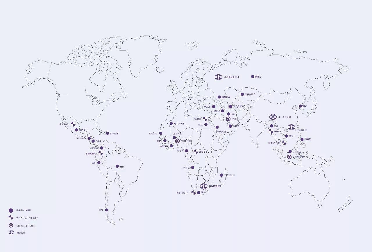 北汽集團響應國家“一帶一路”倡議,在海外不斷落子,努力實現(xiàn)“世界北汽”的戰(zhàn)略構想。北汽集團已在全球47個國家搭建銷售網絡154家、建設海外產業(yè)基地4家、境外公司7家、KD項目22個。