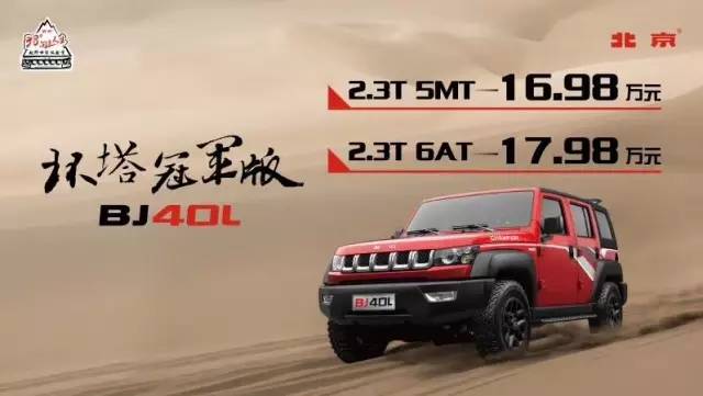 北京(BJ)40L環塔冠軍版增加了伊頓后橋機械差速鎖、重載加強型分動器以及前軸自動輪邊離合器三項裝備,全面提升車輛性能。同時,北京(BJ)40L環塔冠軍版采用全新火焰紅涂裝,配備前輪眉專屬“CHAMPION”冠軍拉花、全新熏黑輪轂、環塔版專屬紅黑真皮燙印標識座椅以及環塔主題備胎罩等環塔元素,時刻展現環塔運動的激情和勇奪四冠的榮耀。