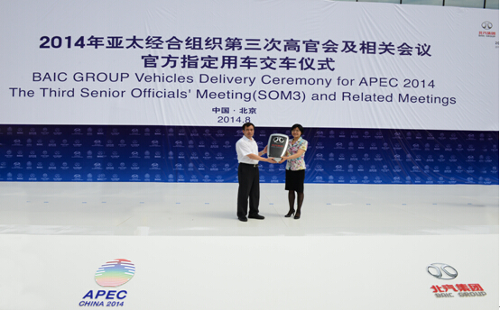 8月5日,“2014年亞太經合組織第三次高官會官方指定用車交車儀式”在北京汽車產業研發基地舉行,市籌備辦、北汽集團及相關贊助單位等領導共同出席,見證這一盛事。